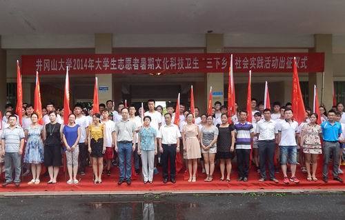 7月2日下午,我校2014年暑期大学生志愿者三下乡社会实践出征仪式举行。校党委副书记金桂英、副校长肖长春出席并为15支国家级、省级、校级重点团队授旗。校团委书负责人宣读了2014年我校暑期社会实践重点团队名单。大...