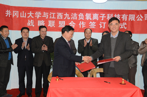 1月8日下午,我校与江西九洁负氧离子科技有限公司战略联盟合作协议签订仪式在九洁公司举行。校党委书记万继抗出席并致辞,副校长桂国庆代表学校与江西九洁负氧离子科技有限公司董事长万仁全签订协议。吉安县县长李克...