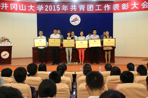 一批先进集体和个人受表彰 5月8日下午,我校2015年共青团工作表彰大会召开。5个“五四”红旗团委、6个团建先进单位、5个优秀学生会、5个网宣工作先进单位、36个“五四”红旗团支部、8个学雷锋先进班集体、10个优秀学...