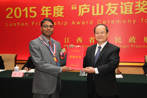 10月21日,由江西省政府主办的2015年度江西省“庐山友谊奖”颁奖典礼在南昌举行,我校外籍教师Jageshwar Prasad Shah获此殊荣。省长鹿心社致辞并为获奖外国专家颁奖,副省长毛伟明宣读省政府授奖决定,省政府秘书长张...