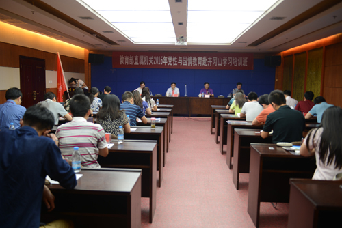 6月17日下午,教育部直属机关2016年党性与国情教育井冈山培训班开班式在校举行。教育部直属机关党委副书记、纪委书记王家勤作动员讲话,校党委书记彭涉晗为培训班授旗,校长曾建平致辞,副校长陈小林主持。教育部直属...