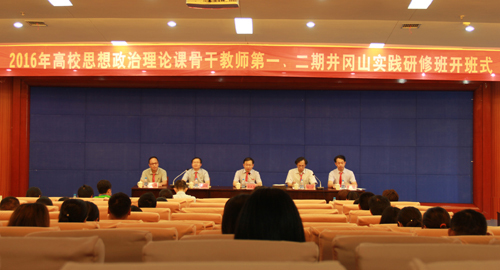 6月27日下午,由中宣部、教育部主办,国家教育行政学院及我校承办的2016年高校思想政治理论课骨干教师第一、二期(井冈山)实践教学研修班,在校举行开班仪式。党委副书记、校长曾建平致辞并为研修班授旗,开班式由副...