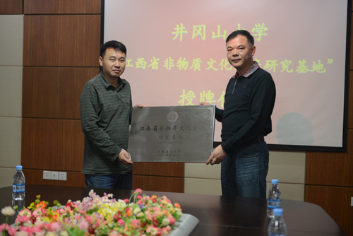 日前,我校获批江西省文化厅“江西省非物质文化遗产研究基地”,9月29日下午,副校长桂国庆代表学校为我校江西省非物质文化遗产研究基地授牌。科研处负责人和基地研究人员参加了仪式。 桂国庆讲话中要求,该基地要努...