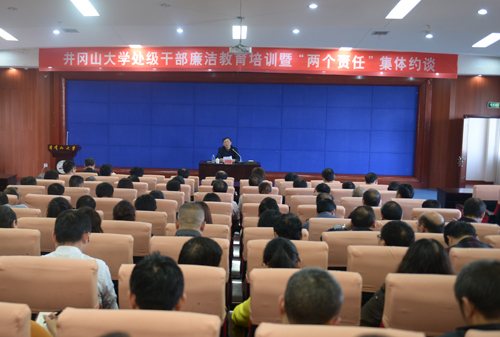 校党委书记彭涉晗对处级干部进行“两个责任”集体约谈 11月18日下午,学校举行2016年全校处级领导干部廉洁教育专题培训班开班式,校党委书记彭涉晗出席,纪委书记史胜平主持,全校处级领导干部参加。开班式后,校党...