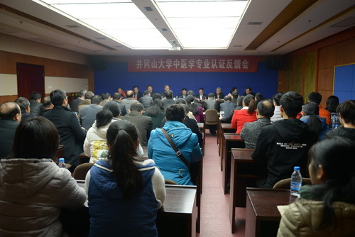 反馈会会场 12月9日上午,中医学专业认证工作现场考察意见反馈会在我校召开。教育部专家组组长、广州中医药大学校长王省良教授代表专家组对认证情况进行了反馈。专家组认为,井冈山大学中医学专业符合《本科医学教育...