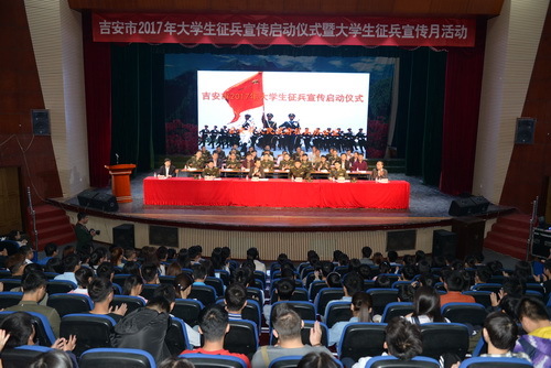 4月15日,吉安市2017年大学生征兵宣传启动仪式暨大学生征兵宣传月活动在我校举行。吉安市委常委、市政府常务副市长、市征兵领导小组组长杨丹,吉安市委常委、军分区政委林德明,吉安军分区副政委虞方,我校党委常委、...