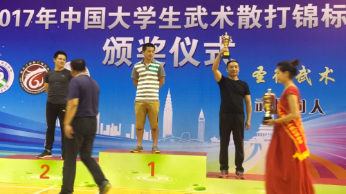 7月13日至20日,2017年全国大学生散打锦标赛在黑龙江大学举行,我校代表队经过五天的激烈角逐,最终荣获乙组团体总分第三名和体育道德风尚奖。 我校散打队由体育学院王卫民老师指导训练,在本次比赛中共摘得男子60kg...