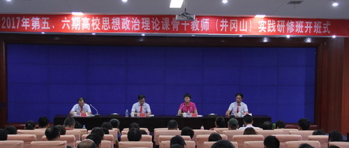 8月25日下午,由中宣部、教育部主办,国家教育行政学院及我校承办,2017年高校思想政治理论课骨干教师第五、六期(井冈山)实践研修班,在我校举行开班仪式。 党委副书记、校长曾建平致辞,党委常委、副校长黄俭根主...