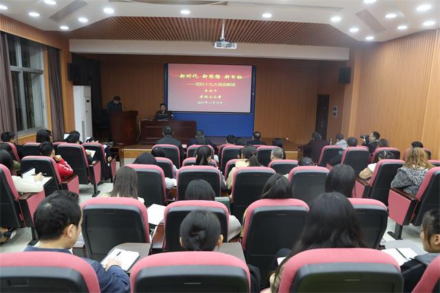 11月16日,校党委书记彭涉晗来到所联系的人文学院,在第九教学楼207教室为该院2016级新闻专业和2016级汉语言文学专业本(3)班共100余名大学生宣讲党的十九大精神。有关部门、学院负责人聆听了报告。 彭涉晗书记的报...