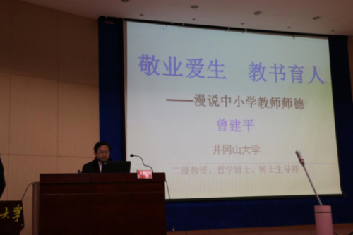 12月21日上午,“国培计划”专家库专家、校长曾建平教授为“国培计划(2017)”——江西省乡村中小学教师团队研修项目井冈山大学小学语文、小学英语班的学员作了题为《敬业爱生,教书育人——漫谈中小学教师师德 》的...