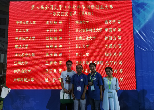 日前,第三届全国大学生生命科学创新创业大赛(决赛)在江苏徐州闭幕。由我校生命科学学院陆辉强博士指导,2016级生物科学专业马玉荣同学等组成的创新项目团队,凭借作品《PKCε介导异鼠李素对抗N2a细胞内质网应激损...