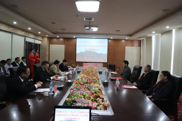 贾燕光先生代表三人行广告有限公司向学校捐赠1000万元人民币 党委书记彭涉晗向贾燕光先生颁发捐赠证书 贾燕光、曾建平校长代表双方签订共建协议 10月27日下午,我校与三人行广告有限公司共建映山红青年学院签约暨捐...