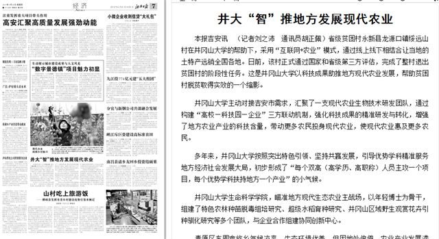 本报吉安讯 (记者刘之沛 通讯员胡正佩)省级贫困村永新县龙源口镇绥远山村在井冈山大学的帮助下,采用“互联网+农业”模式,通过线上线下相结合让当地的土特产远销全国各地。日前,该村正式通过国家和省级第三方评估...