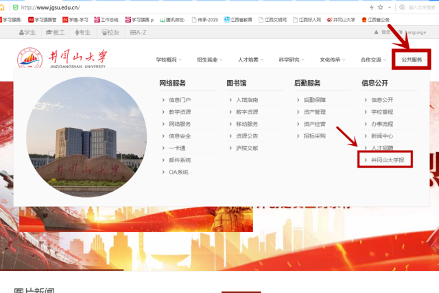 为了使主流媒体更好地服务读者,近日,《井冈山大学报 》电子版正式上线,这也是党委宣传部为了适应融媒体发展所作出的积极探索和实践。广大读者可登录我校官方网站,在“公共服务”栏目的“信息公开”子栏目下方的“...