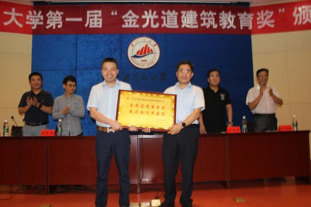 6月13日下午,井冈山大学首届“金光道建筑教育奖”颁奖会举行。建筑工程学院12名品学兼优的学生和2名优秀教师获得奖励。党委常委、副校长肖宜安代表学校向金光道环境建设集团有限公司副总经理熊月文授予荣誉锦牌并讲...
