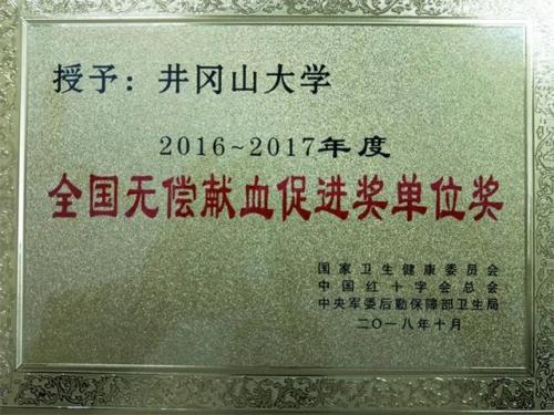 近日,国家卫生健康委、中国红十字会总会、中央军委后勤保障部卫生局三部委联合表彰在全国无偿献血工作中表现突出的单位和个人,我校荣获“2016-2017年度全国无偿献血促进奖”。全国有342个单位获得表彰,江西省有11...