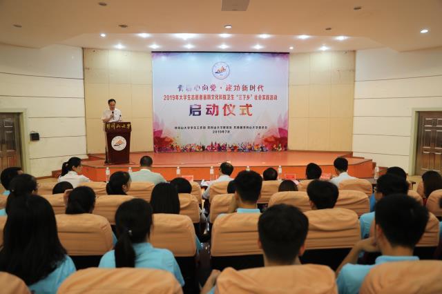 7月4日下午,学校举行2018年暑期大学生志愿者“三下乡”社会实践活动启动仪式,党委副书记温和瑞宣布出征,党委常委、副校长黄俭根讲话,校领导为三支申报团中央专项的重点团队授旗,有关部门负责人为其他15支实践团...