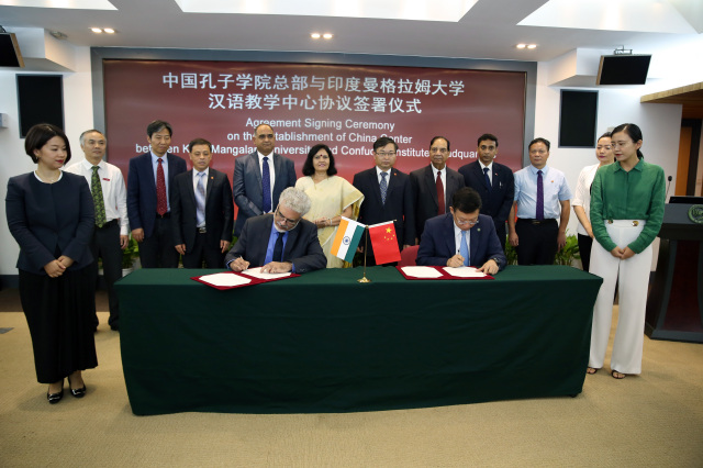 签约仪式 8月11日上午,我校与印度曼格拉姆大学合作共建的曼格拉姆大学汉语教学中心签约仪式在北京孔子学院总部举行。校党委副书记、校长曾建平率领国际合作与交流处相关人员出席签约仪式,与中国驻印度大使馆教育组...