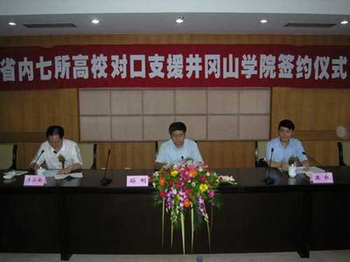 省委省政府高度重视井冈山大学的恢复建设工作 全省七所高校对口支援井冈山学院签约仪式隆重举行 副省长孙刚出席 省教育厅厅长漆权讲话 省教育厅副厅长李小南主持 签约仪式会场 副省长孙刚出席仪式 8月3日,南昌大学...
