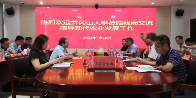 7月16日上午,井冈山大学现代农业发展研究院率各研究中心技术团队代表与吉安市农业农村局“现代农业发展工作交流会”在市农业农村局召开。校党委常委、副校长黄俭根,吉安市委农办主任、市农业农村局书记、局长张厚楷...