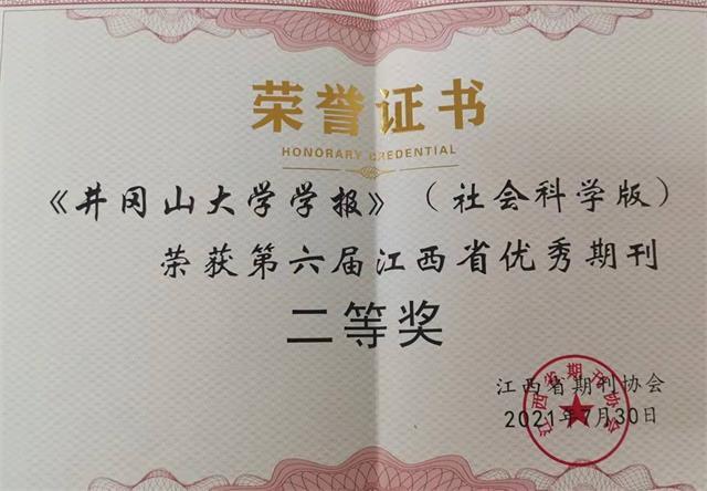 近悉,在第六届江西省优秀期刊奖评选中,《井冈山大学学报(社会科学版)》荣获优秀期刊二等奖。 江西省优秀期刊奖评选由江西省期刊协会组织,每5年进行一次,今年是第六届。此次评选分为文化综合类、学术类两大类三...