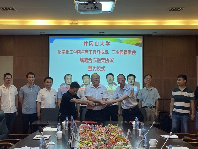 7月26日,化学化工学院与新干县科技局、工业园区管委会在井冈山大学正式签署战略合作框架协议,井冈山大学党委常委、副校长冷明和新干县副县长杨成奎分别致辞,化学化工学院院长陈文通与新干县科技局局长朱年庆、工业...