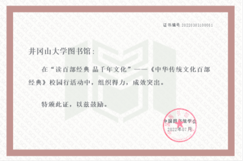 近日,由国家图书馆、中国图书馆学会开展的“读百部经典 品千年文化——《中华传统文化百部经典》校园行”系列活动结束。我校30名师生获个人奖项;学校图书馆获“组织得力”奖。其中,在15.35万人参与的《百部经典》...