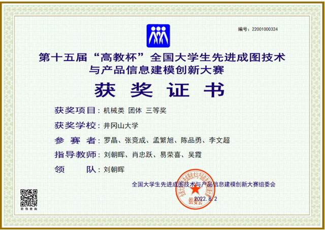 在日前举办的第十五届“高教杯”全国大学生先进成图技术与产品信息建模创新大赛中,机电工程学院2020级机制专业罗晶等5位同学获奖,其中罗晶同学荣获个人全能二等奖,陈品勇、李文超、孟繁旭、张竞成四位同学均荣获个...
