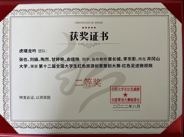 第十二届全国大学生红色旅游创意策划大赛总决赛在陕西省延安市采用线上的方式举行。经过激烈角逐,由商学院旅游管理教研室章长城、李东影两位教师指导,以19旅游管理金牌讲解班张也、刘娟、陶然、甘婷艳、俞佳炜同学...
