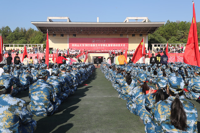 2022级新生开学典礼暨军训动员大会举行 10月22日上午,井冈山大学2022级新生开学典礼暨军训动员大会隆重举行,党委书记胡春晓出席典礼并为新生军训团授旗,党委副书记、校长...