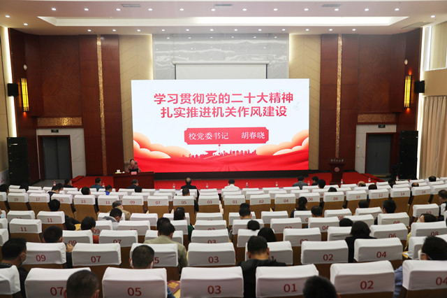 11月28日下午,学校在图书馆报告厅举办学习贯彻党的二十大精神宣讲报告会,校党委书记胡春晓为机关干部作题为《学习贯彻党的二十大精神 扎实推进机关作风建设》的宣讲报告,提出贯彻落实要求。学校机关党委和直属单位...
