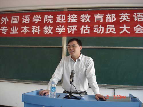 11月2日下午,外国语学院迎接教育部英语专业本科教学评估动员大会召开,副校长桂国庆出席大会。参加会议的有教务处负责人、外国语学院党政领导、全院教职工、学生干部以及学生代表等两百多人。 桂国庆对外国语学院的...