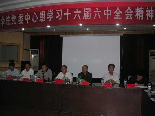 党委中心组举行(扩大)学习会 学习党的十六届六中全会精神 10月31日下午,党委中心组举行扩大的党的十六届六中全会精神集体学习会,党委书记万继抗主持并讲话,在校领导孙甦、桂国庆、康泰、郭名根、罗学渭、王伴青...