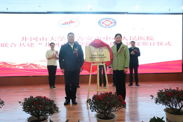 2月20日下午,井冈山大学附属吉安市中心人民医院揭牌签约仪式在吉安市中心人民医院举行,校党委书记胡春晓与吉安市中心人民医院党委书记廖建洲共同为井冈山大学附属吉安市中心人民医院揭牌,胡春晓致辞,党委常委、副...