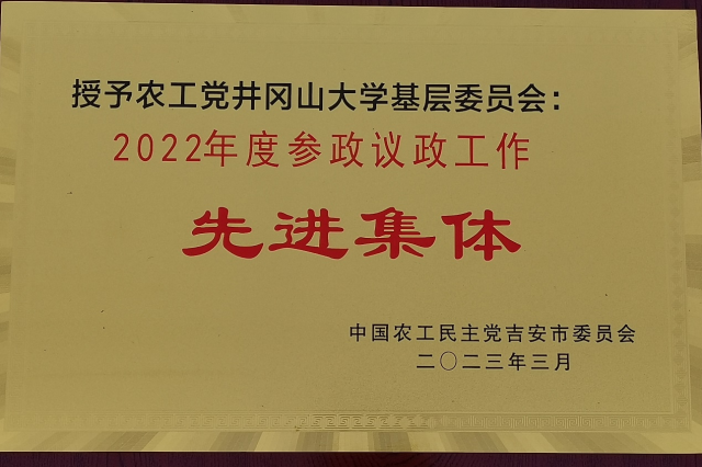 凝心聚智促发展 参政议政结硕果 我校农工党基层委员会喜获多项表彰 3月31日,农工党吉安市委会召开了2022年度总结表彰会议。我校农工党基层委员会荣获“五星级基层组织“和”参政议政工作先进集体”荣誉称号。基层委...