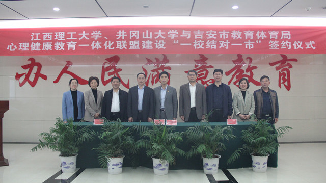 江西理工大学、井冈山大学与吉安市教育体育局三方携手 心理健康教育一体化联盟建设“一校结对一市”合作协议签约仪式举行 4月26日,江西理工大学党委常委、副校长龚姚腾一行来校考察交流。上午,学校举办了工作交流会...